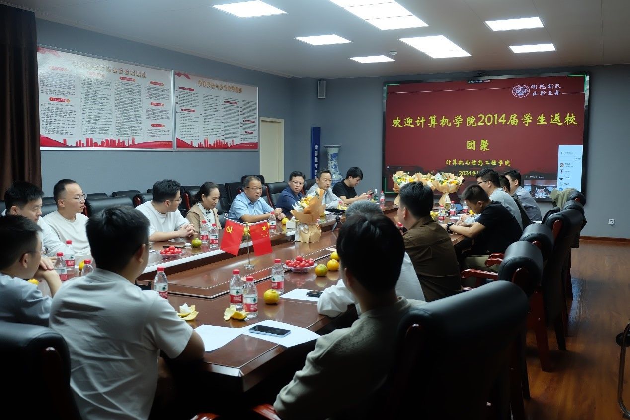 2014届校友回校团聚,重温校园时光,共叙师生情谊。学院党委书记周志民、执行院长韩道军、副院长张勇、2014届部分校友、时任辅导员姚莉和教师代表参加活动。