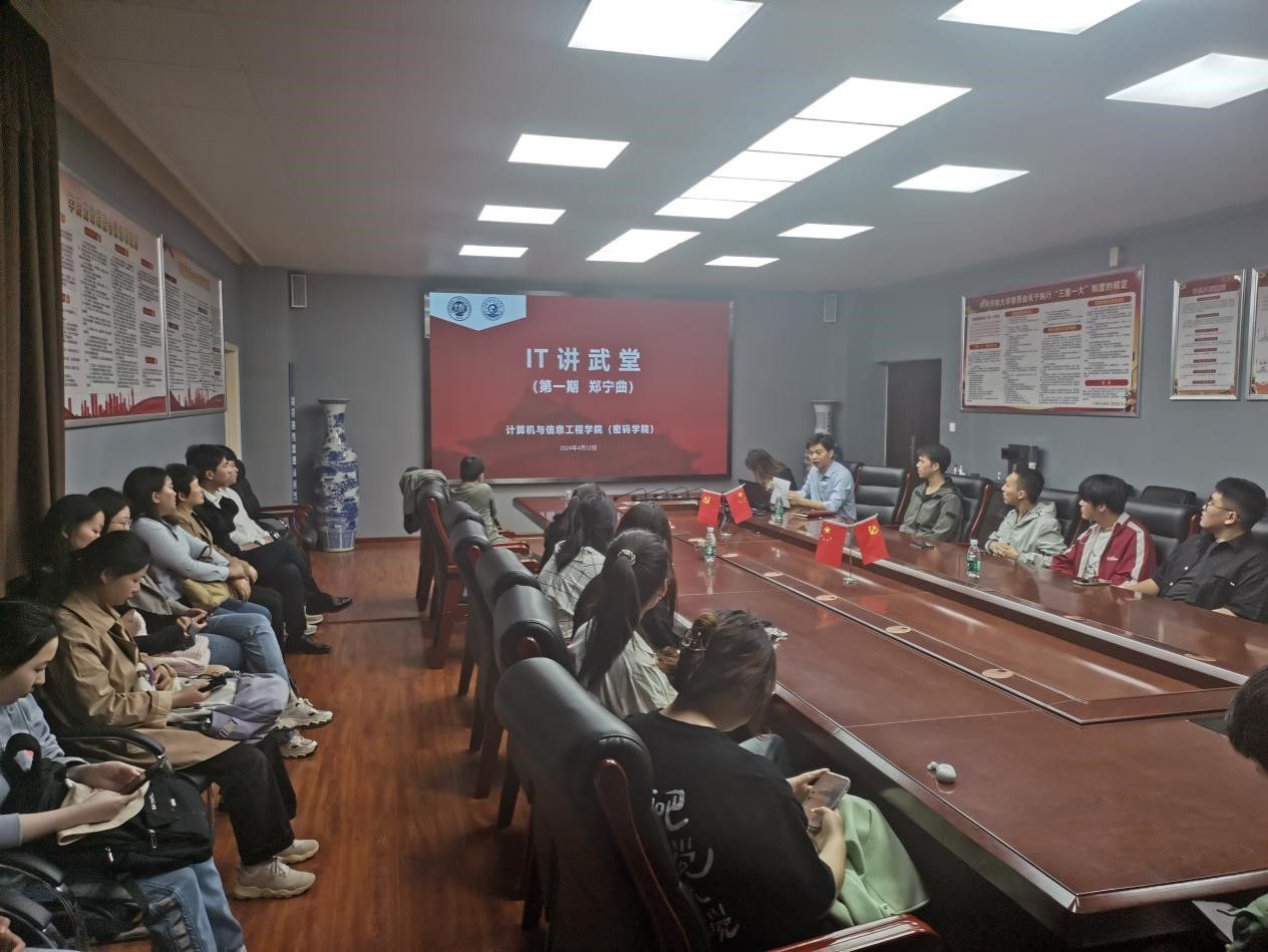 在302会议室召开IT讲武堂座谈会,邀请学院优秀校友——福州鼎公信息技术有限公司董事长郑宁曲先生来院,与学院研究生、本科生代表进行座谈。