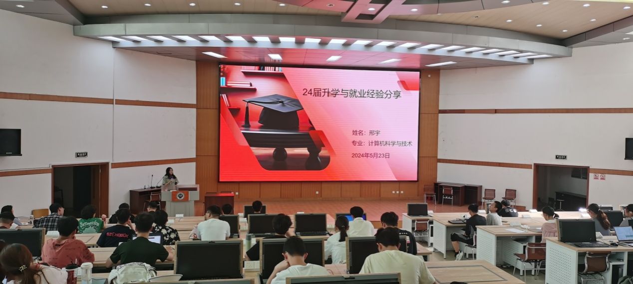在201机房成功举办2024届升学与就业经验交流会,学院党委副书记张大帅、辅导员孙洁、2021级学生参加会议。4位2020级学生分别从不同角度分享自己考研和就业的心得体会。