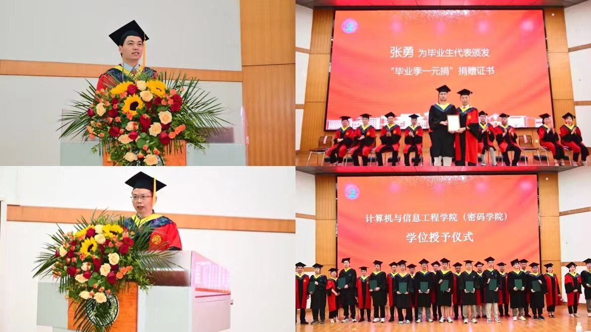 (密码学院)2024届本科生毕业典礼暨学位授予仪式在学院201会议室隆重举行。副校长张立新、学院领导班子成员、学位评定分委员会成员、教师代表以及2024届全体本科毕业生参加典礼。典礼由学院党委副书记张大帅主持。