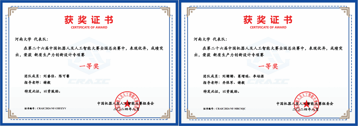 两支队伍获得新质生产力创新设计赛项一等奖的好成绩。