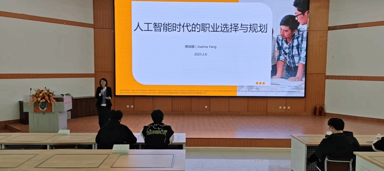 在学院201实验室举办人工智能时代的职业选择与规划讲座,主讲人杨琼娜从人工智能时代的创新产业环境背景到工作岗位认知,从自我认知寻找优势到人职匹配进行分享,最后以一个实际案例讲述从象牙塔到“职业人”的角色转变要求。