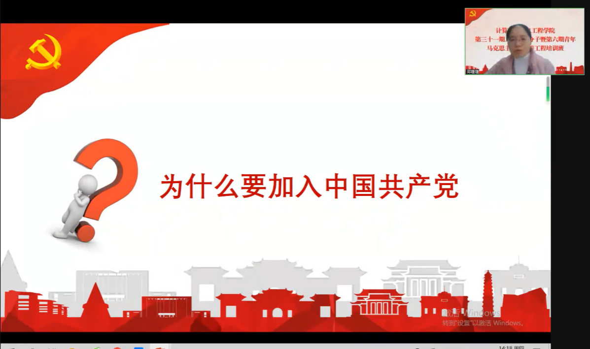 党员发展流程”为题,从为什么要加入中国共产党、党员发展的总要求、党员发展的5个阶段25个步骤以及我国的宗教政策等4个方面进行讲解。她表示,加入中国共产党是一件长期且严肃的事情,每个环节都要经过党组织的认真考察和群众的监督,所有学员要端正入党动机,提高思想觉悟,以党员的标准严格要求自己,以实际行动争取早日加入党组织。