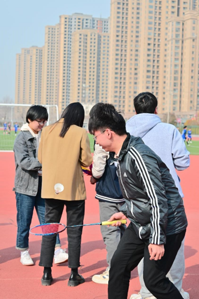 这次趣味运动会的赛事包括团体项目和个人项目,团体项目有拔河、五人六足、接力跑、背对背接球,个人项目则有套圈、踢毽子、托羽毛球。比赛的规则设计得十分巧妙,既考验了同学们和老师的团队协作能力,又考察了他们的个人技能和反应能力,更重要的是,比赛增添了许多趣味性和互动性,让老师和同学都玩得十分开心,也充分展现了师生之间轻松愉快的交流氛围。
