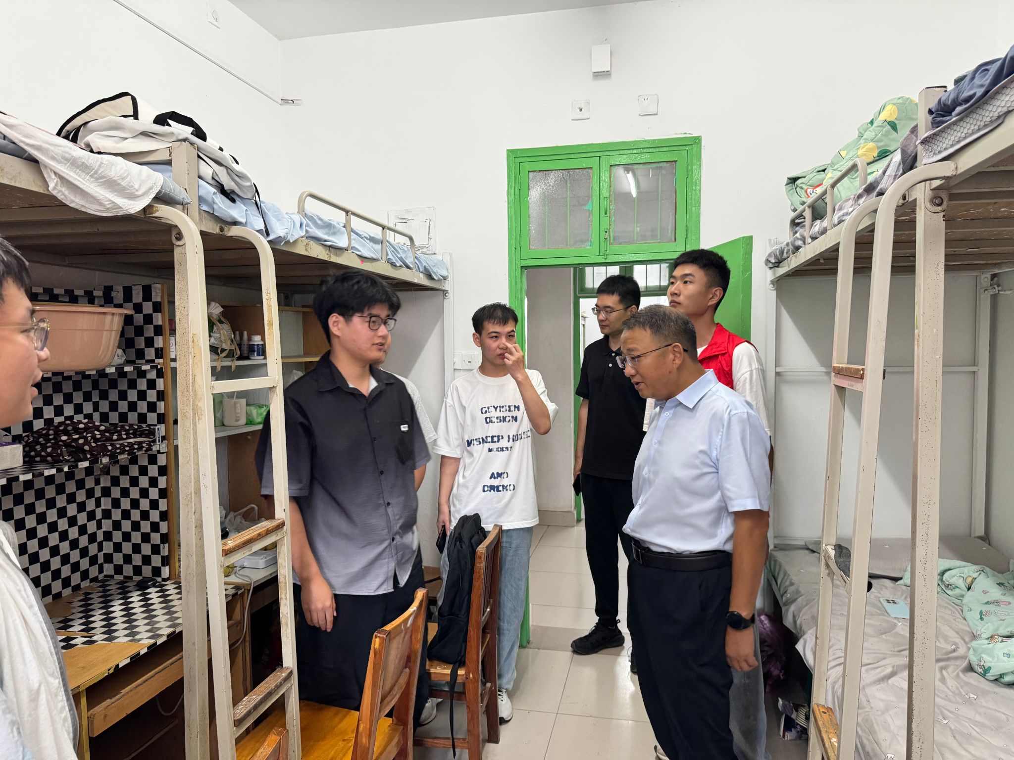 迎来400余名2025级新生。为表达学院对新同学的热烈欢迎与深切关怀,8月31日下午,学院党委书记周志民、执行院长韩道军带领领导班子成员赴东苑学生公寓、南苑学生公寓、研组团公寓走访慰问本科和研究生新生。