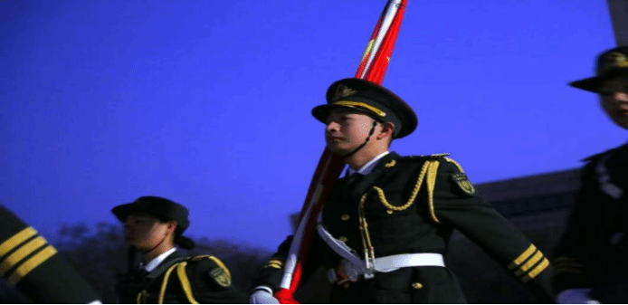 仪式伊始,国旗护卫队迈着整齐的步伐,护送国旗走向升旗台,国旗缓缓升起,随风飘扬,全体师生齐声高唱国歌,表达对祖国的热爱和无限敬意。