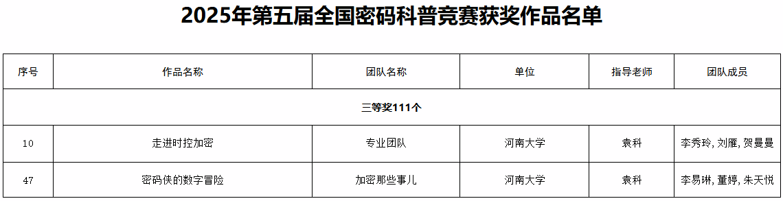 第五届全国密码科普竞赛由国家密码管理局指导、中国密码学会主办,以“知密码、懂密码、用密码”为主题,共吸引全国347支团队、318件作品参赛。经过网络初评、专家与大众联合评审,最终147件作品脱颖而出,麻豆成人