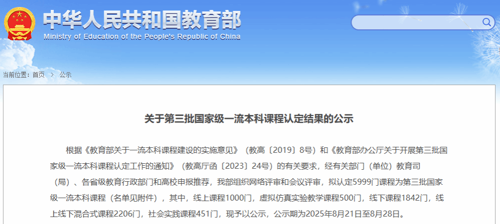 8月21日,教育部公示第三批国家级一流本科课程认定结果,麻豆成人