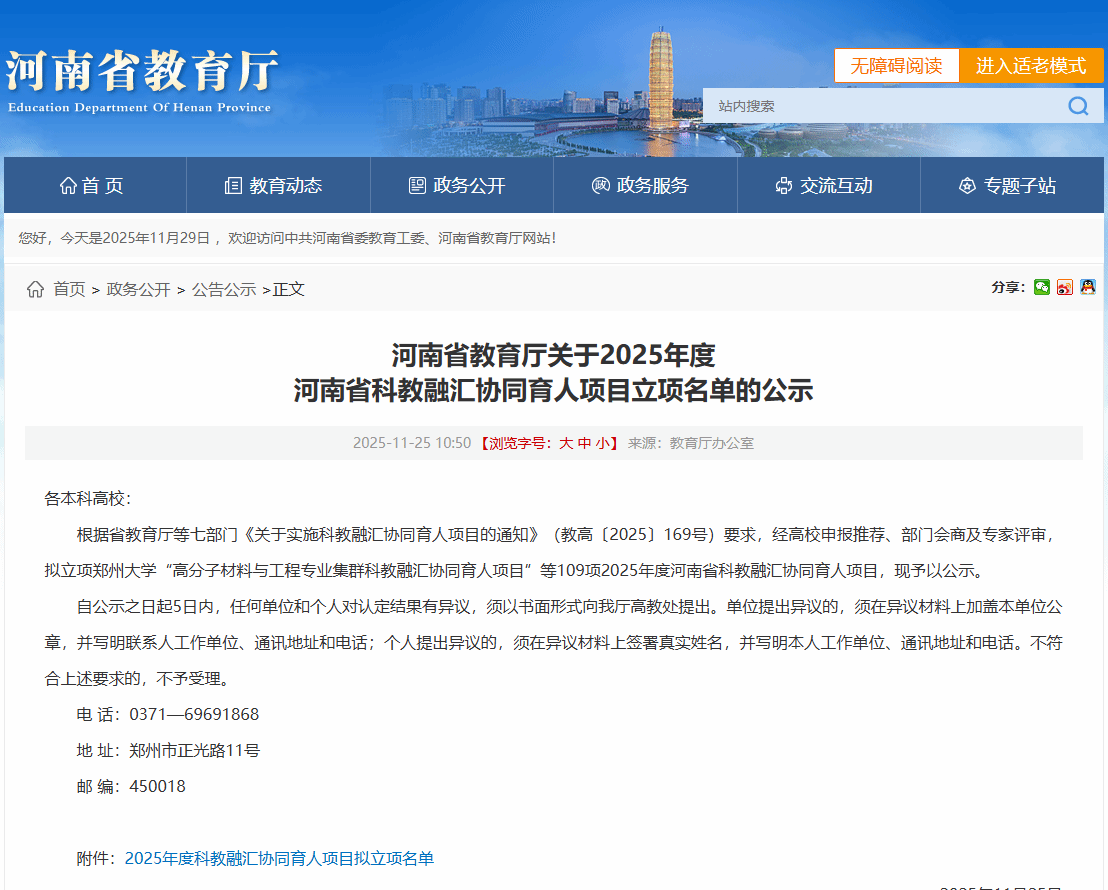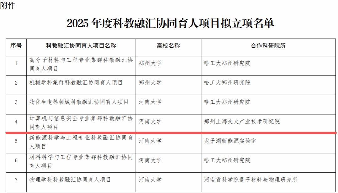 11月25日,河南省教育厅公示2025年度科教融汇协同育人项目立项结果,由麻豆成人 葛强教授牵头申报的 “计算机与信息安全专业集群协同育人”项目成功获批。
