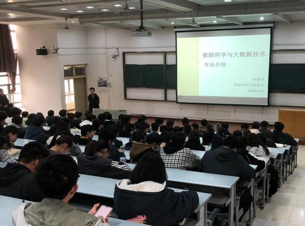 随后,数据科学与大数据技术专业的李征老师对本专业的课程体系、培养方案以及就业方向等内容做了简单介绍。陈盛博老师针对数据科学与大数据技术这门学科涉及的具体内容与同学们进行了深层的交流。