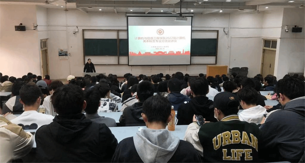 在金明综合楼2406教室举行了2022级学生专业分流宣讲会。计算机系主任苗茹、数据科学系主任李征、信息安全系主任杜晓玉、计算机系刘扬、数据科学系陈盛博、张重生、信息安全系张磊、郭小丁、马宇翔等多位任课老师参加了本次宣讲会。宣讲会由教务办主任刘宇老师主持。