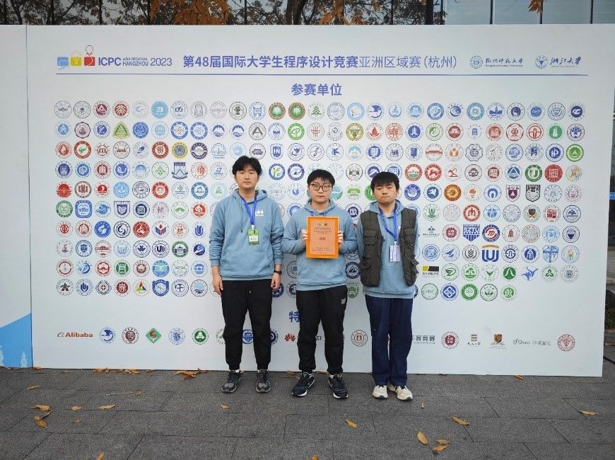 2020级学生程崇正、毛子豪、李金刚组成的队伍代表学校参赛,取得ICPC杭州站铜牌。