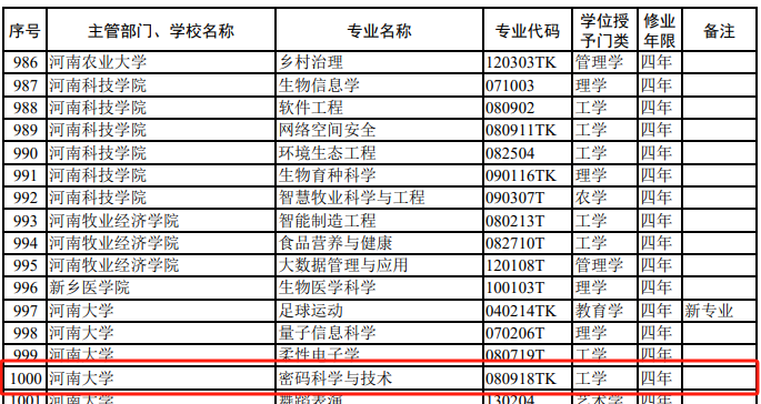成功获批 “密码科学与技术”本科专业(专业代码:080918TK)。