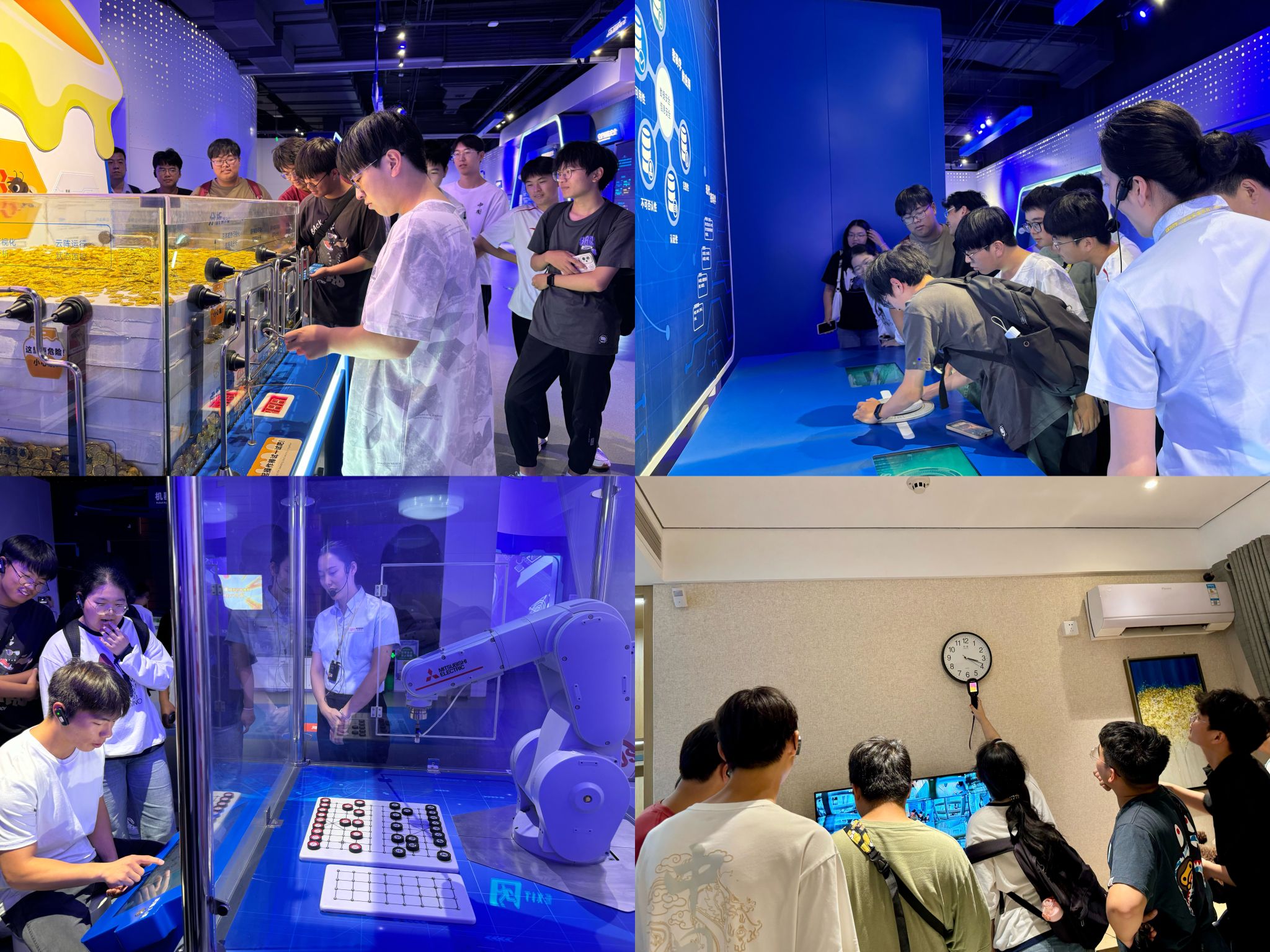 抵达网络安全科技馆后,学生分为两组进行参观体验。网络安全科技馆设置个人安全、政企安全、社会安全、综合竞技四个主展区,共200余个展项和1700多件展品。在参观过程中,同学们通过互动、参与、演示等方式,深入了解了网络发展史、AI技术、密码原理、计算机病毒原理等网络安全知识。在个人安全展区,同学们亲身体验、学习了如何保护个人隐私、识别网络诈骗、寻找针孔摄像头等实用技能;在政企安全展区,讲解员重点讲解了国家和企业在网络安全方面面临的挑战及应对策略,鼓励同学们厚植家国情怀,充分利用所学知识助力网络安全产业发展;在社会安全展区,通过模拟攻击与防御的展示,同学们更加直观地感受到了网络安全的重要性与紧迫性。另外,展馆还设置了综合竞技区,亲身感受网络安全的实战氛围后,同学们更加坚定了提升自身专业技能和实战能力的决心,投身网络安全事业的热情无比高涨。